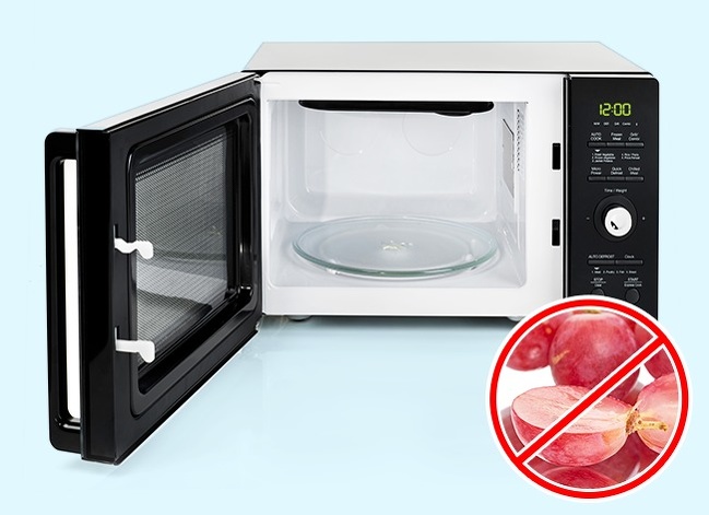 Якщо розрізати виноградину навпіл і нагріти її в мікрохвильовій печі, вийде вибуховою шар плазми. Вся справа в тому, що ягода дуже маленька, тому електромагнітні хвилі концентруються занадто сильно і розривають її. Тому якщо з якихось причин ви захочете розігріти виноград в мікрохвильовці, не робіть цього.