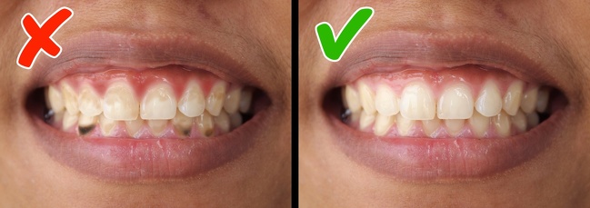 - Дієта з вмістом продуктів, збагачених кальцій, фосфор і вітамін D, має важливе значення для здоров'я зубів. Вживайте молочні продукти, темний рис, крупнолистовую зелень, помідори, бобові, жирну рибу, цитрусові і виноград.