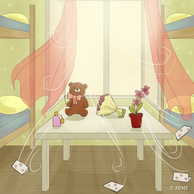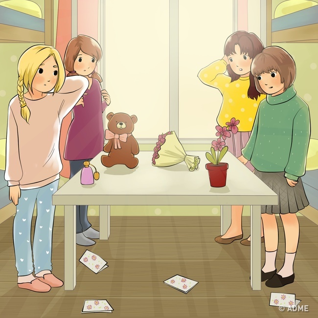 Після тренування дівчата повернулися в свою кімнату і побачили розкидані по підлозі листівки і подарунки на столі.