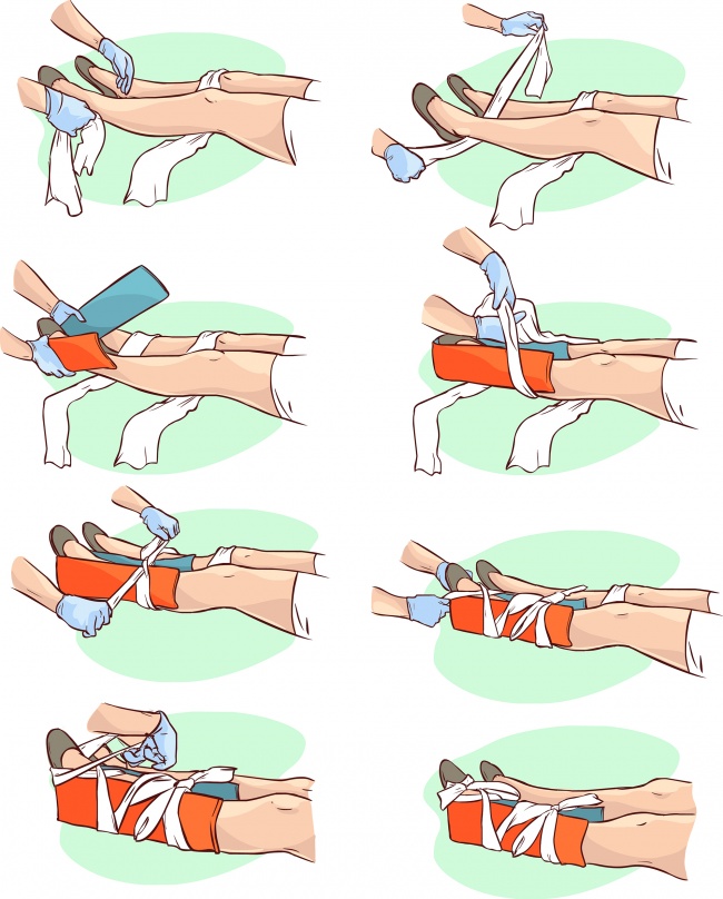 Зламані кінцівки не можна випрямляти насильно. Треба знерухомити два найближчих суглоба, наклавши шину так, щоб потерпілому не довелося розпрямляти руку або ногу.