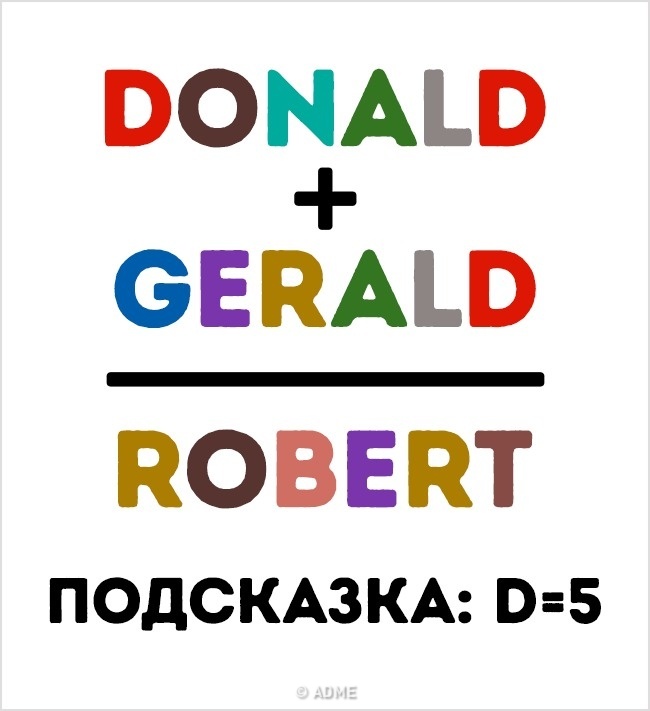 Перед вами досить дивне завдання. Дональд і Геральд в сумі дорівнюють Роберту. На перший погляд, суцільна абракадабра. Насправді це абсолютно правильний приклад. У вас є підказка і 15 хвилин для його вирішення.
