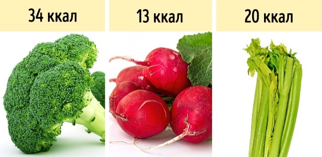 Дійсно, селера, редис і деякі інші овочі в сирому вигляді для дієти справжня знахідка — їх можна їсти без шкоди для фігури. Тим не менше їх калорійність швидше нульова, так як на перетравлення такого овочу витрачається стільки ж калорій, скільки він містить. Заїдати селерою тортик марно — калорійність тортика від цього не зміниться.