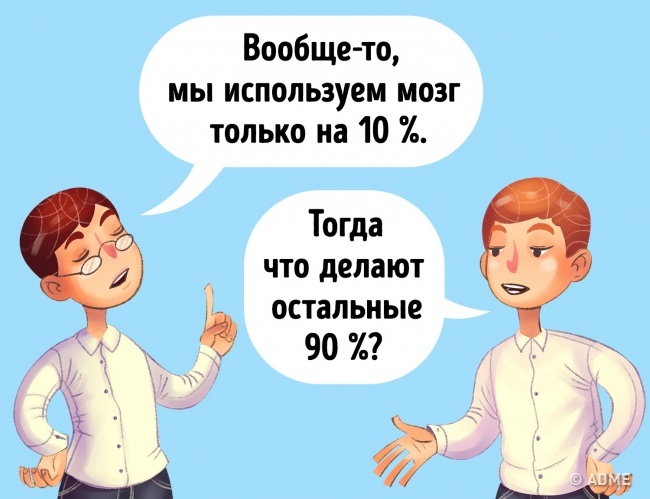 Міфи про мозок займають чи не лідируючі позиції у списку помилок людства. Це трапляється тому, що всі речі, пов'язані з наукою, здаються нам апріорі правдивими. Саме тому ми вирішили спростувати найбільш розповсюджені міфи про мозок, створивши цей список.