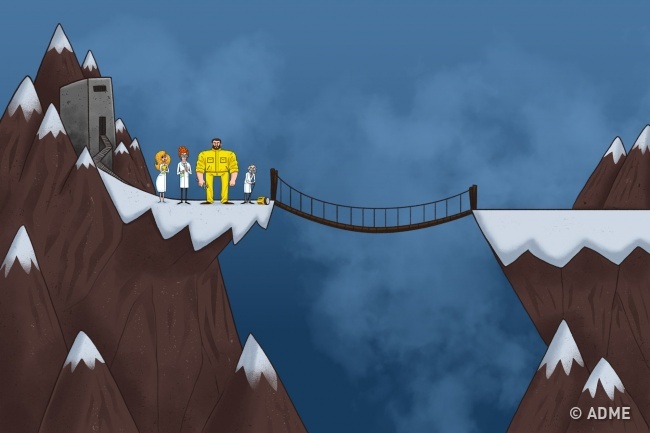 Однак зробити це не так-то просто: щоб крихкий міст обрушився, одночасно йти по ньому можуть тільки двоє. Ускладнює завдання те, що всі ви не можете йти з однаковою швидкістю.