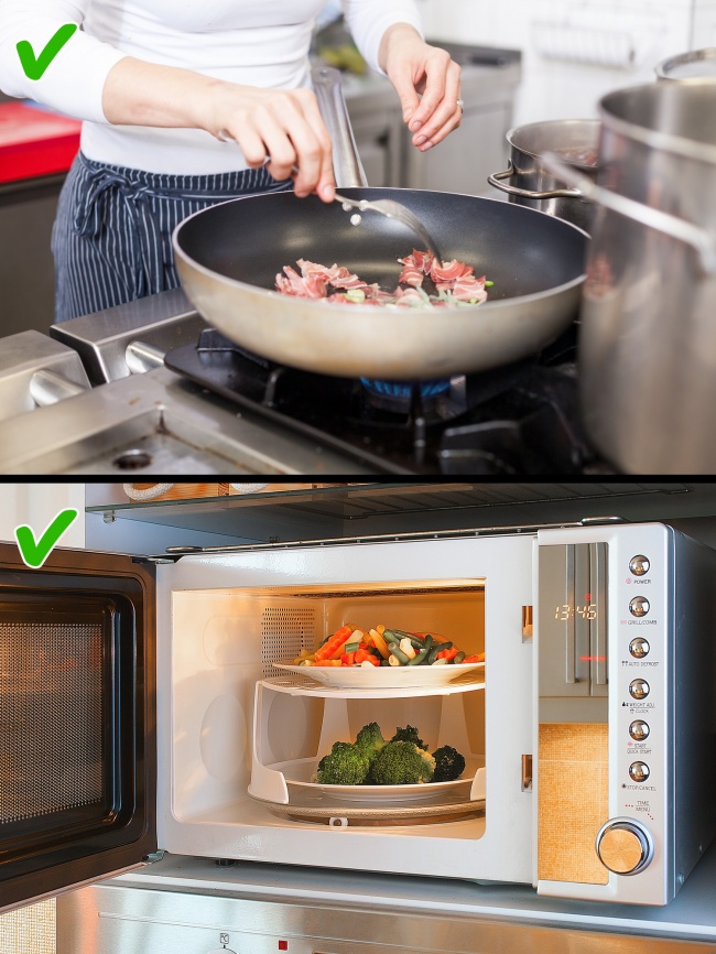Це оману також дуже поширене. Існувала думка, що під час підігрівання в мікрохвильовій печі їжа втрачає свої поживні властивості. Але це неправда. Вчені з Гарварда провели дослідження і довели, що, хоча частина поживних речовин втрачається, це відбувається не через мікрохвильовки, а з-за самого процесу нагрівання. Таким чином, в даній ситуації між плитою і мікрохвильовою піччю немає ніякої різниці.