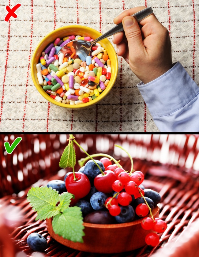 Як це ні дивно, але від вітамінів в таблетках користі практично немає, що було доведено численними дослідженнями. Але це зовсім не означає, що організму не потрібні вітаміни: вони потрібні, але отримувати їх необхідно правильними шляхами. Кращим варіантом будуть овочі і фрукти, а не таблетки, тому що вітаміни з таблеток засвоюються набагато гірше. До того ж здоровій людині найчастіше не потрібні додаткові вітаміни, тому він здатний отримувати їх із звичайної їжі.