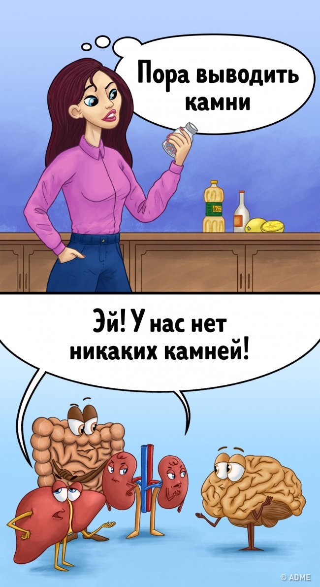 Що пропонують чистити? Печінка, нирки, жовчний міхур — справжні каменоломні. Так вважають адепти нетрадиційної медицини. Нещасним «камненосителям» радять натщесерце пити олію (кінськими дозами!), оцет, кислі соки і сумнівні препарати: для лікування і профілактики.