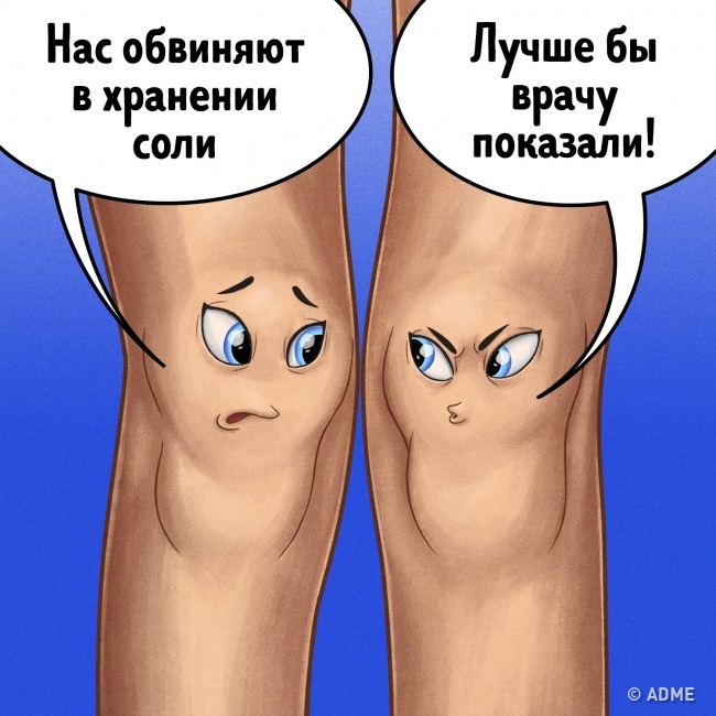 Популярні міфи свідчать: часта причина дискомфорту в суглобах — відкладення солей. Треба рятуватися БАДами, примочками, детокс-програмами і впадати в кому при вигляді солоної їжі.