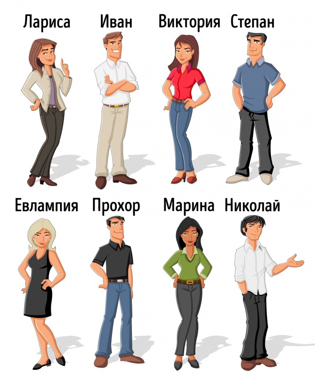 Давайте потренуємося. Запам'ятайте імена людей нижче, придумуючи асоціації. Намагайтеся використовувати всі 5 правил. Наприкінці можете придумати цікаву історію про всіх.