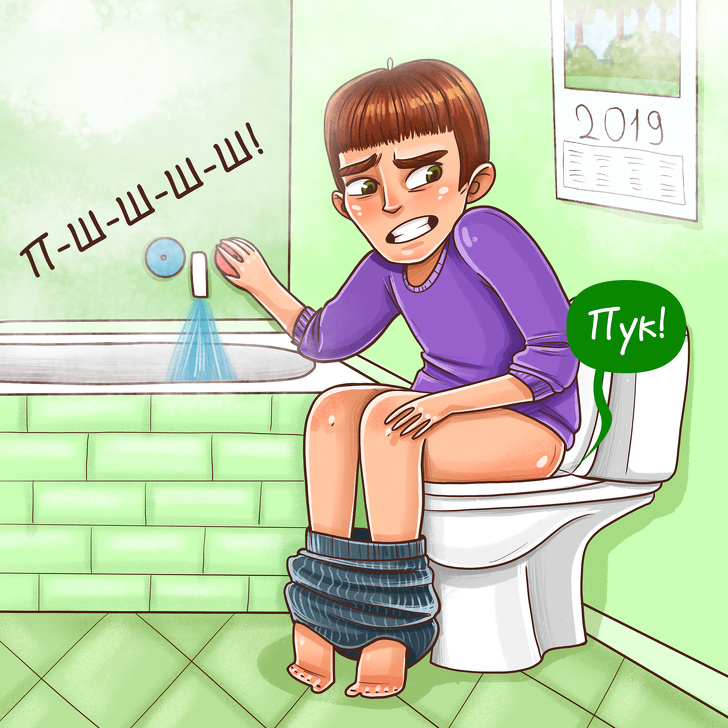 - Шумова завіса, створена відкритим краном, яку намагається використовувати кожен, хто відвідує туалет в гостях.