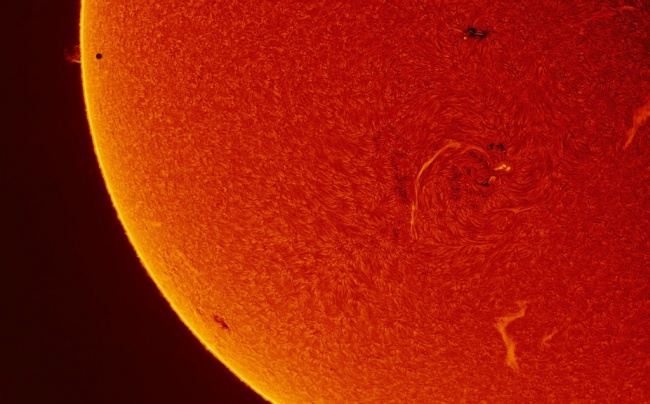 Маленька чорна крапка у лівій частині фото — це Меркурій на тлі Сонця