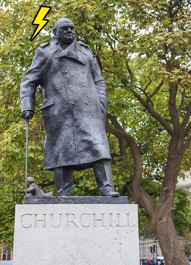Статуя Вінстона Черчілля на Парламент-сквер знаходиться під напругою — аби голуби сідали йому на голову.