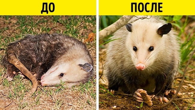 Поранений або наляканий опосум падає мертвим, у нього стекленеют очі, з рота тече піна, а з анальних залоз виділяється сморід. Після того як небезпека мине, тварина чудесним чином оживає і одужує.