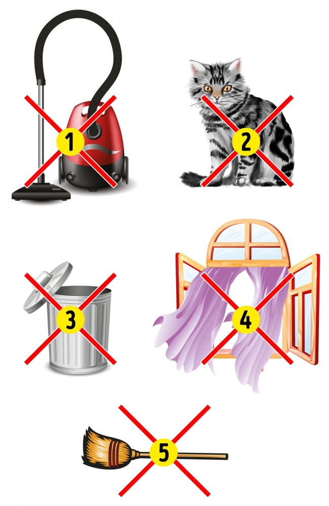 - Залишайте дітей і тварин в кімнаті. Ртуть легко прилипає до підошов або вовни, тому не варто ризикувати.
