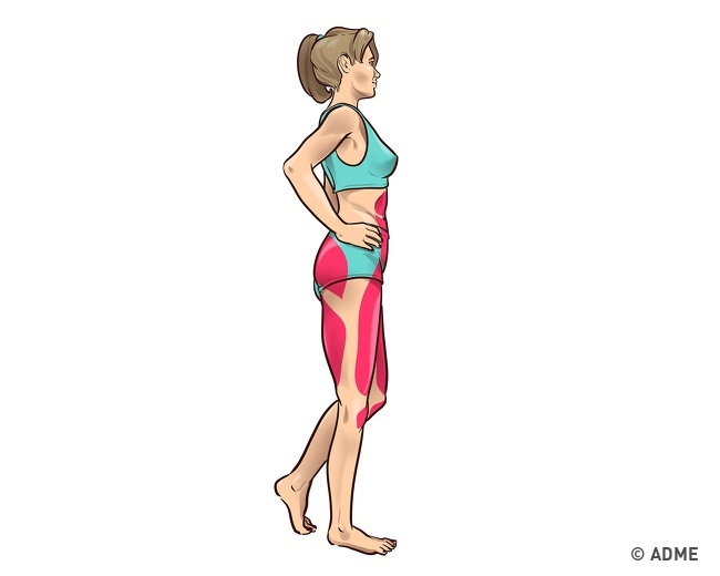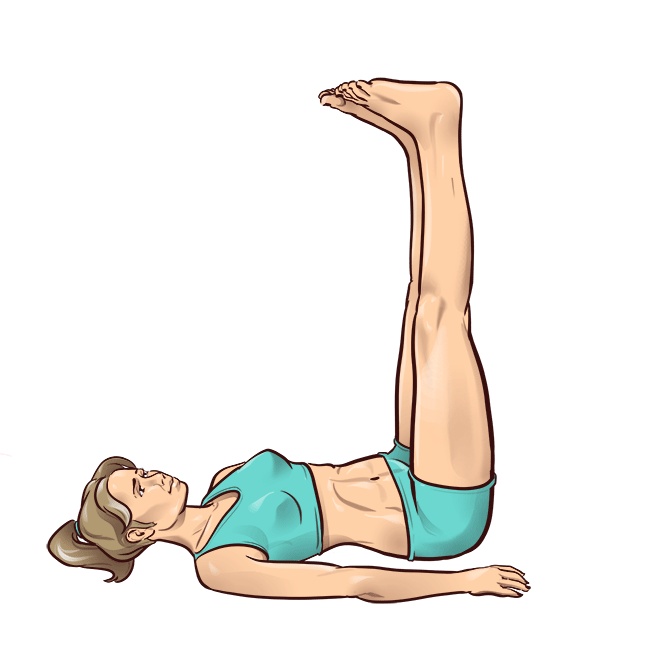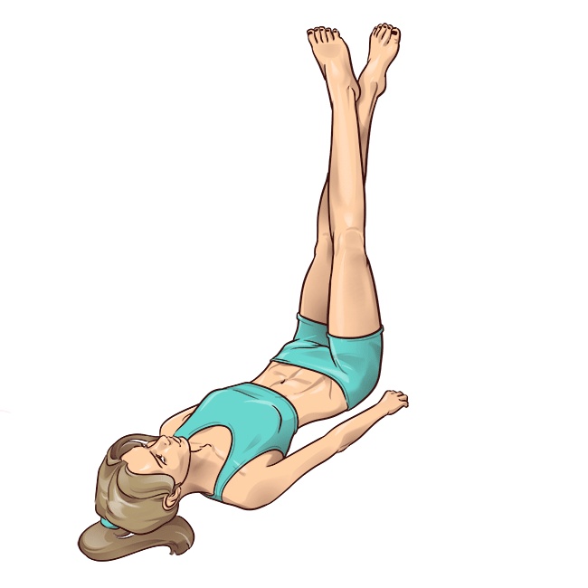 Вихідне положення — лежачи на спині, руки вздовж тіла. Обидві ноги піднімаємо під прямим кутом, максимально випрямляючи коліна і витягаючи шкарпетки. По черзі згинаємо і повертаємо ноги у вихідне положення, при цьому не забуваючи тримати коліна разом і напружувати передню частину стегон.