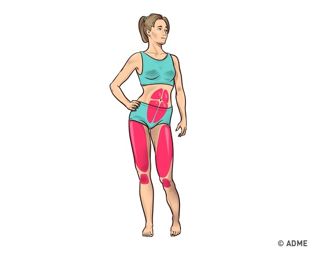 Працюють і стають стрункими: передня частина стегон, коліна, прес.