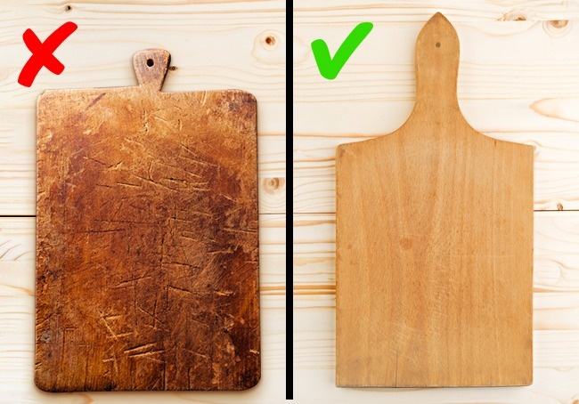 Обробна дошка — чемпіон за кількістю мікробів, у цьому з нею може посперечатися хіба що губка для миття посуду. В мікротріщинах, які утворюються на поверхні дошки, накопичуються небезпечні бактерії, позбутися яких украй складно. Вибирайте дерев'яні дошки, бажано ялівцеві: в них містяться смоли, які перешкоджають розмноженню бактерій. Або ж обробляйте свої дошки перекисом водню.