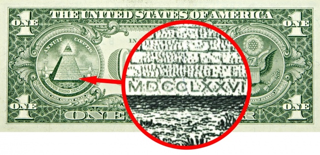 В основі піраміди є шифр «MDCCLXXVI». Це римська нумерація: M — 1 000, D — 500, CC — 200, L — 50, XX — 20, VI — 6. Разом виходить 1776 — рік, в якому Америка стала незалежною державою.