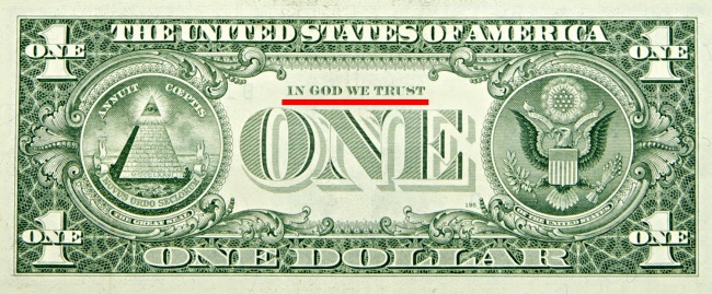 Кажуть, що у часи Великої депресії влади вирішили закликати окультні науки на допомогу, щоб нація вийшла із затяжної економічної кризи, чим і можна пояснити латинські написи: Annuit coeptis — «Час початку», Novus ordo seclorum — «Новий порядок на віки», E pluribus unum — «З багатьох — єдине».