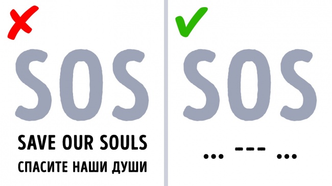 Досить поширений міф про те, що міжнародний сигнал лиха SOS — це абревіатура англійської фрази «save our souls» — врятуйте наші душі. Але насправді ніякого зв'язку з цими словами в сигналу немає. Його створили таким просто тому, що на азбуці Морзе його дуже легко транслювати в разі небезпеки: три крапки, три тире, три крапки.