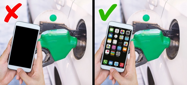 Застереження про користування телефоном на заправних станціях ставлять в першу чергу з причини того, що радіохвилі вашого телефону можуть впливати на електронне обладнання, керуючий паливним насосом.