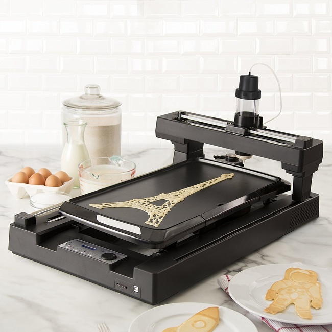 Pancake Bot може спекти млинець у формі чого завгодно - від квітки до портрета коханої мультгероя. Діти можуть спочатку намалювати майбутні млинці, а потім поспостерігати, як принтер друкує їх сніданок в точності таким, як на малюнку. Залипательное відео про роботу пристрою можна подивитися тут.