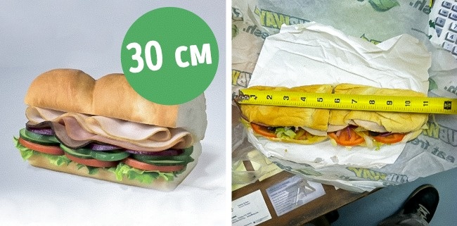 Ось і маленький лайфхак від виробників смачних сендвічів: можна вкорочувати їх до 27 см, і різниці ніхто не помітить.