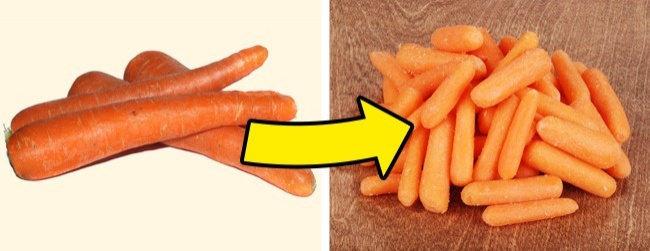 Крихітні морквини, якими ми так любимо хрустіти у вільний час, насправді звичайна морква. Як не крути, нам доведеться змиритися з тим фактом, що бебі-морква — майстерний комерційний хід.