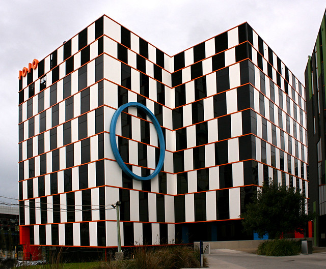 На картинці передмістя Мельбурна, Австралія. Це унікальна будівля, яке втілює собою цікаву геометричну ілюзію, випадково виявлену на будівлі кафе в Брістолі в 1973 році (хоча є дані, що вона зустрічалася і раніше). Всі прямі поздовжні лінії паралельні, всі чорно-білі об'єкти рівні. Але мозок відмовляється це бачити.