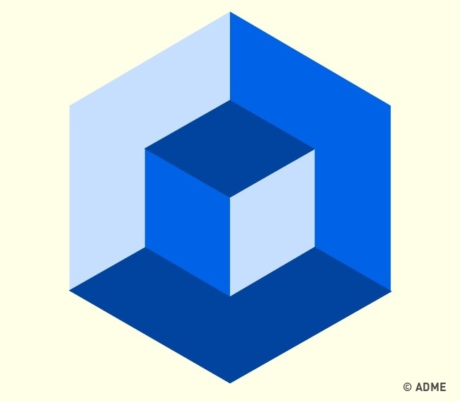Одна з найбільш відомих геометричних ілюзій. Правильної відповіді немає. Це може бути куб, у якого не вистачає кута, куб в кубі або куб перед кубом. Якщо ви любите орігамі, можете зібрати схожу головоломку з паперу.