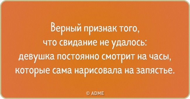 Якщо настрій зіпсувався на побаченні з-за ваших невиправданих очікувань — тут нічого не вдієш, вставайте і йдіть. Але з'явитися на зустріч вже не в дусі означає звести до мінімуму ймовірність того, що вас захочуть побачити вдруге. Адже в поганому настрої ми позбавляємося нашого головного козиря — щирої посмішки.