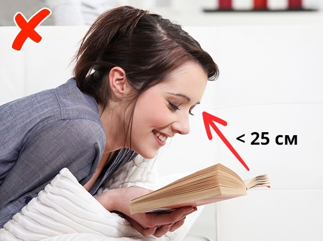 Вчені побачили прямий зв'язок між тим, як людина читає, і станом його зору. Дослідники впевнені, що ті, хто не може і дня прожити без книги і при цьому тримає її майже біля самого обличчя, згодом часто страждають короткозорістю.