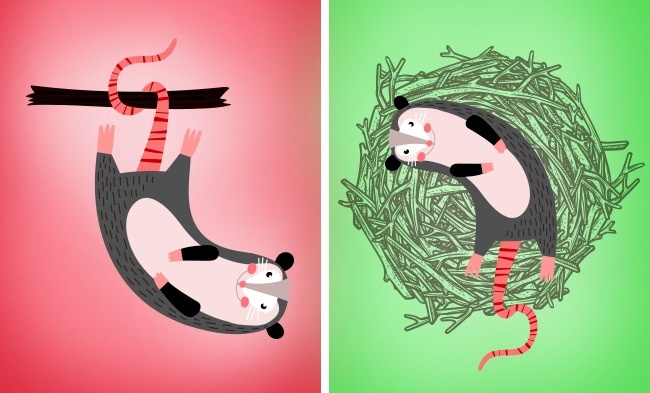 3. Опосуми сплять вниз головою, повиснувши на хвостах