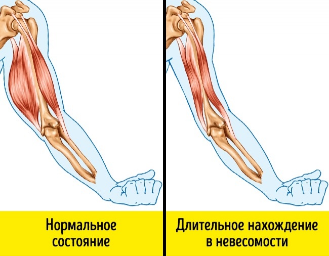 При тривалому знаходженні в невагомості м'язи у відсутність звичної сили тяжіння починають атрофуватися. Щоб уникнути цього, на МКС встановлені спеціальні тренажери, які дозволяють зберігати м'язову масу навіть при тривалому перебуванні на орбіті.