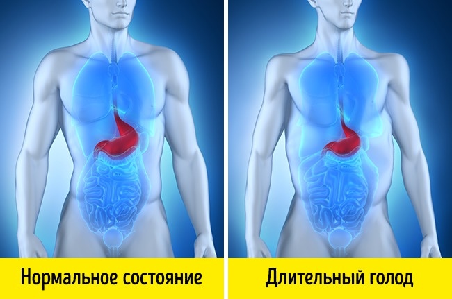 Тому при голодуванні в першу чергу страждають м'язи, а от зменшення жирової тканини починається тільки тоді, коли організм витратить всі запаси глюкози. Після цього організм приймається за білки, що спричиняє руйнування кісток і зубів і згодом ослаблення імунної системи.