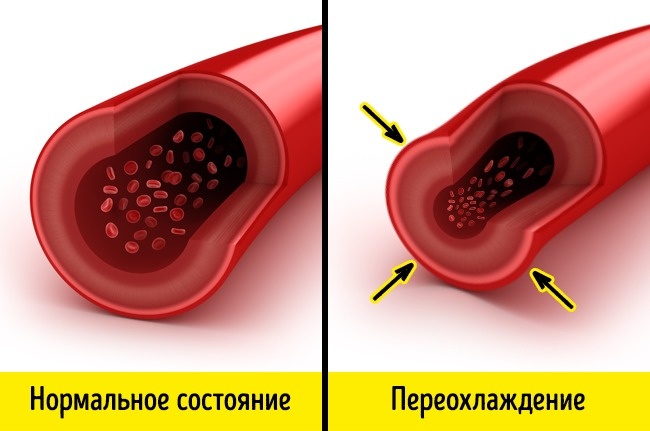 При тривалому перебуванні на холоді організм намагається знизити тепловтрати, з-за чого судини на поверхні тіла починають звужуватися. Цей захисний механізм дозволяє нам зберегти більшу кількість теплої крові, необхідної для роботи внутрішніх органів.