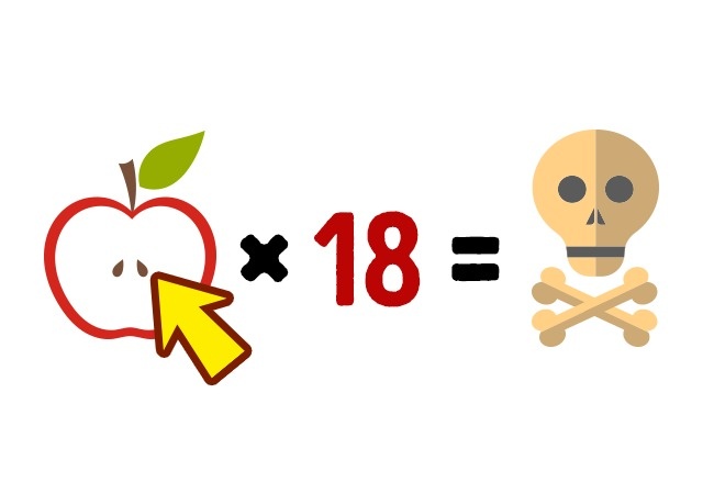 Від 18 яблук ви не помрете. Але от якщо дістанете насіння з 18 яблук, роздрібніть їх, ретельно пережуете і проковтнути, то цілком собі можна й померти. А все тому, що в насінні міститься ціанід. Парам-парам-пам-пам!