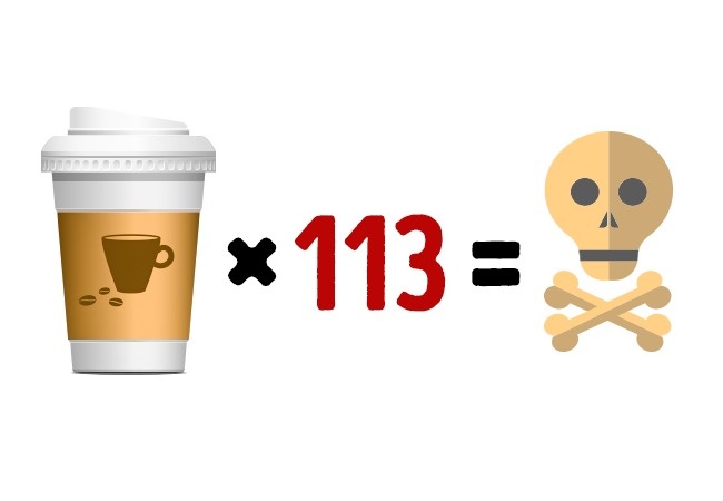 Летальною дозою кофеїну вважається 15 грамів. Це приблизно 113 склянок кави (по 250 мл). Хоча варто відзначити, що при такому розкладі людина загине скоріше не від кофеїну, а з-за інтоксикації водою, так як 113 стаканів — це майже 30 літрів води. Так що якщо ви не будете їсти сухий ложками кави, то отруїтися до смерті їм практично неможливо. Ну якщо тільки не змішати його з газованою водою і енергетиком, як підліток з США.