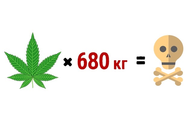 А ось з марихуаною справи йдуть трохи по-іншому: для летального результату треба викурити 680 кг за 15 хвилин або з'їсти 22 кг за раз, правда, це не кращий спосіб отримати від неї задоволення. Плюс на таке не здатний навіть Снупп Догг.