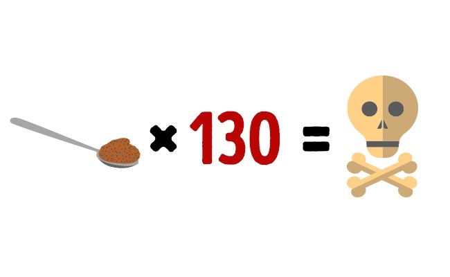 В цілях безпеки Social.org.ua вирішив дізнатися, в якій кількості найпопулярніші нині продукти можуть перетворитися на смертельну отруту. Цифри розраховані на одноразове вживання продукту середньостатистичним чоловіком вагою 80 кг