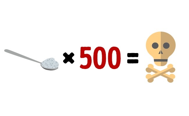 Критична доза сахарози становить 13,5 грамів на кілограм маси тіла. Це означає, що середній людині треба в один присід поглинути 2,5 кг цукру, що дорівнює приблизно 500 ч. л.