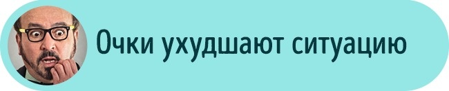 Багато хто вважає, що окуляри - це знак того, що ти програв битву поганого зору і змирився зі своєю долею. Насправді оптика лише допомагає налаштувати оці потрібну чіткість. Тобто окуляри - це не тренажер, не ліки, а просто інструмент щоб бачити з тим дефектом зору, що у вас є зараз. Люди звикають до чіткого зображення в окулярах і відвикають від мутного світу без них, чому вважають, що окуляри лише погіршують ситуацію, що на ділі зовсім не так.