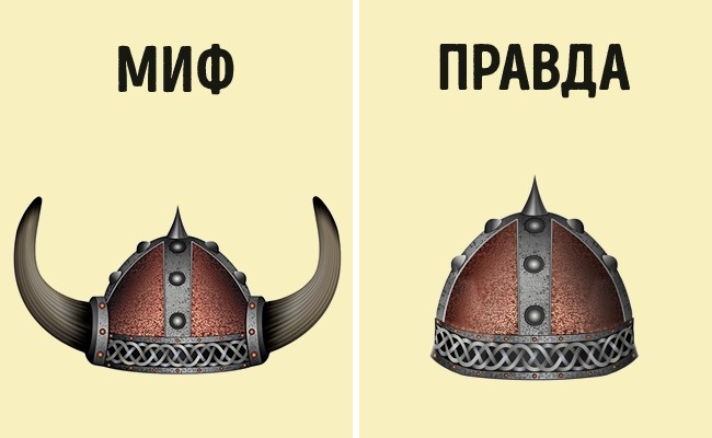 На самому ділі такі шоломи були б дуже непрактичними і незручними для битв. Лише в XIX столітті скандинавські художники стали додавати цю деталь до своїх зображень вікінгів.