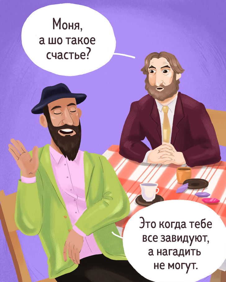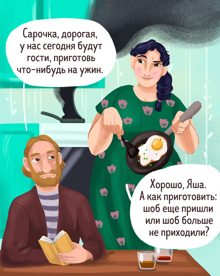Про проникливому розуму, дотепності та круту вдачу євреїв складають легенди — і неспроста. Їх мудрість не обходиться без тонкого гумору і виразності, які потрапляють в саму точку. Сьогоднішні ілюстрації пронизані духом цього народу і щедро присмачені дотепними діалогами.