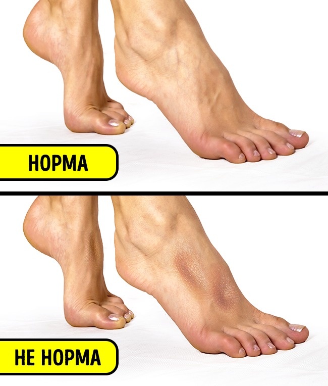 Натисніть великим пальцем зверху або знизу стопи — якщо через кілька секунд після того, як ви прибрали палець, залишаються ямки швидше за все, в організмі відбувається затримка рідини. Рекомендується зменшити вміст солі в їжі й уникати вживання оброблених харчових продуктів.