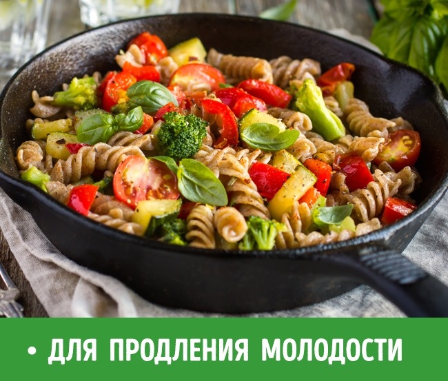 В макаронних виробах міститься крохмаль, вітаміни групи B, і антиоксиданти, які уповільнюють старіння клітин.