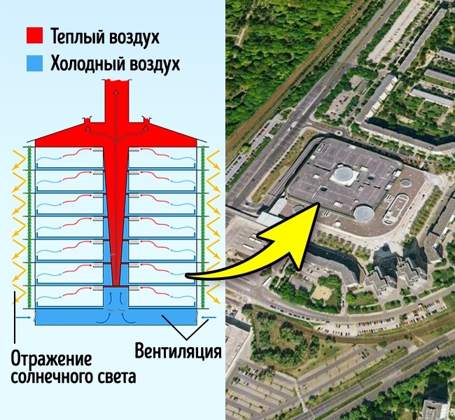 Проаналізувавши структуру термітника, в 1996 році архітектори побудували центр Істгейт в Зімбабве. Температура тут сягає 40 °C, але при цьому всередині прохолодно. Крім того, будівництво використовує 10 % енергії порівняно з сусідніми будівлями.