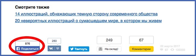- Будь-які сторінки, які містять кнопку «Поділитися в Facebook» або просто «Подобається» (лайк на Facebook).