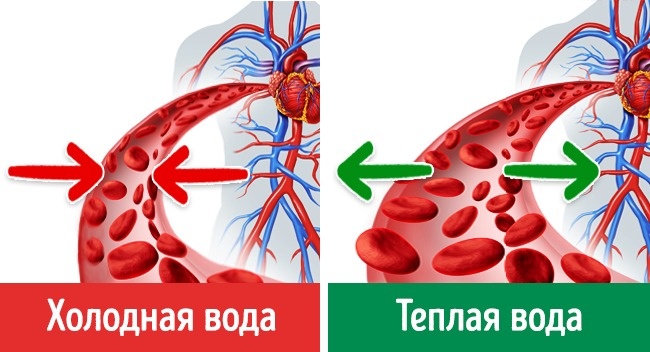 Холодна вода призводить до звуження кровоносних судин.