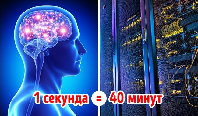 Японські та німецькі вчені спробували відтворити активність людського мозку за допомогою потужного суперкомп'ютера з оперативною пам'яттю 1,4 млн гігабайт. Для цього була створена комп'ютерна модель з 1,73 млрд нейронів. Для того щоб відтворити роботу мозку, яку він робить за 1 секунду, комп'ютера знадобилося 40 хвилин.